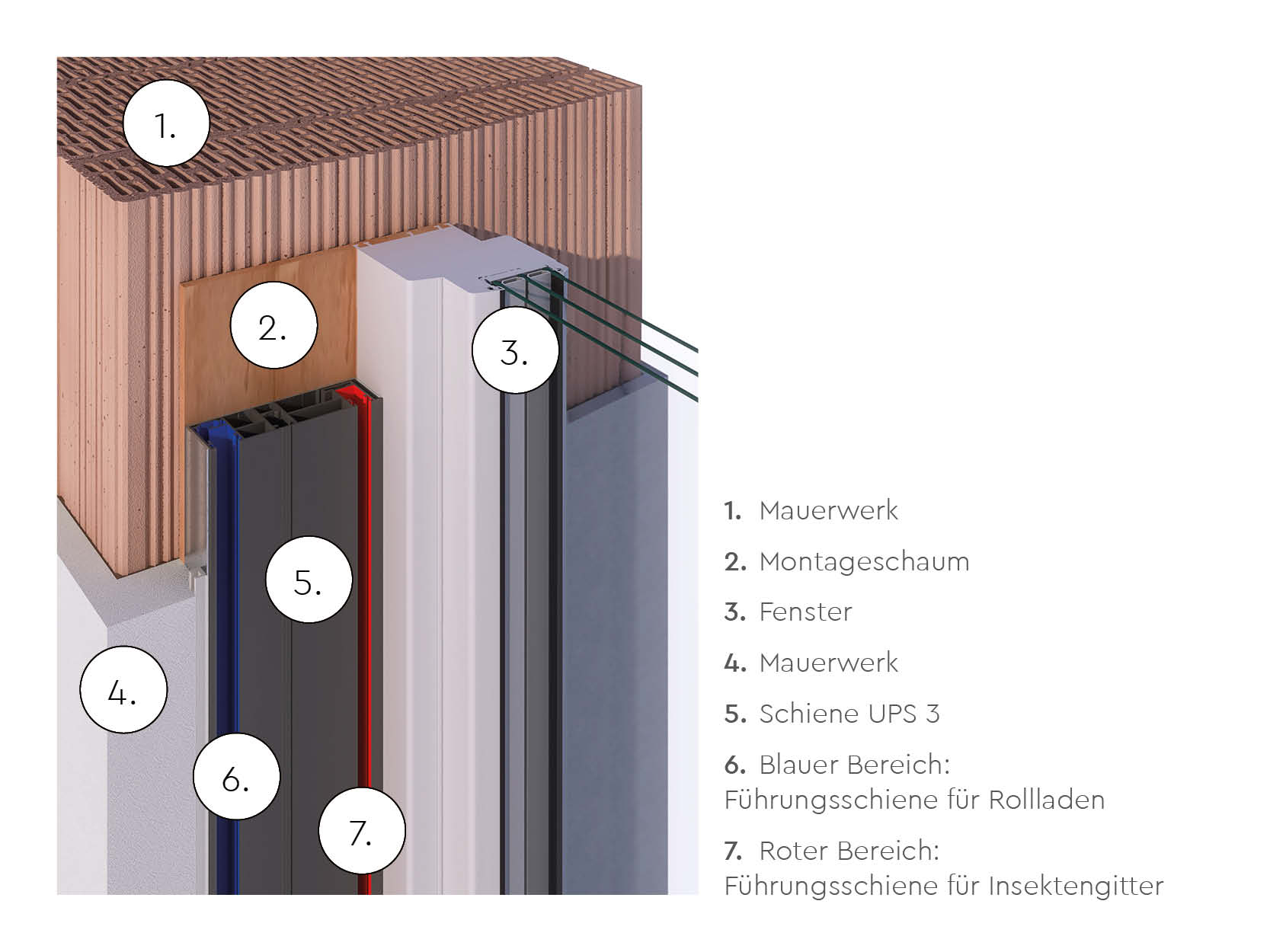 Die UPS3 ist eine flexibel anwendbare Führungsschiene. Sie kann wahlweise für Rollläden oder Raffstore in Kombination mit Insektenschutz verwendet werden. Es ist möglich die UPS3 schon vorab zu montieren ohne entschieden zu haben ob Rollläden oder Raffstore montiert werden. Diese Führungsschiene ist komplett einputzbar. Wird sie in der Farbe der Laibung beschichtet, verschwindet diese völlig in der Fassade.